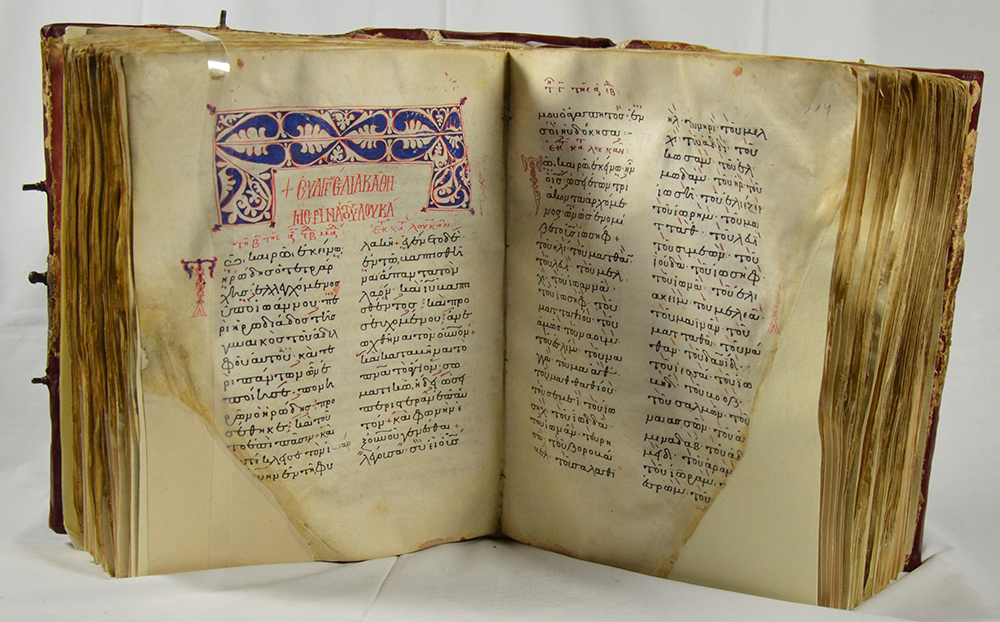 Η τελευταία ενότητα της έκθεσης αφορά τα χειρόγραφα, σκιαγραφούνται τα υλικά και οι τεχνικές κατασκευής τους, η εξέλιξη της γραφής, της εικονογράφησης και της στάχωσης. Η διαδικασία χειρόγραφης αντιγραφής βιβλίων ήταν επίπονη και χρονοβόρα, με αποτέλεσμα να έχει υψηλό κόστος.